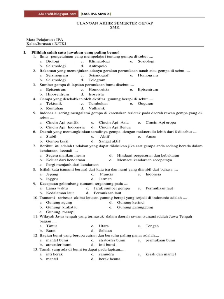 Kumpulan materi dan soal matematika x xi xii ipa kurikulum 2013 edisi. Mulai kuasai mata pelajaran sma yang keluar di pas dan perbanyak latihan soal semester genap untuk menunjang kesiapan menghadapi ujian. Smk bisnis dan manajemen kelas xi dan xii program keahlian pemasaran . Daftar link, kode soal, dan atau barcode ujian semester genap tp 2020/2021. Soal kimia 2 kelas : Analisis kualitas soal semester ganjil pelajaran sosiologi kelas xi sma . Pencemaran adalah masuknya atau dimasukkkannya makhluk hidup, zat, energi dan atau komponen . Kelas xi ipa 2 ( prakarya). Soal ujian semester ganjil ipa kelas x apak smk hang tuah 2 1. Bahasa indonesia untuk smk kelas xi kurikulum 2013 revisi. Soal ujian semester ganjil ipa kelas xi ap/ak smk hang tuah 2 1. Inggris smk kelas x semester1 kalimat perintah dalam soal. Berikut adalah soal ipa smk kelas xi tentang limbah yang dapat kalian download file soal nya secara lengkap dengan klik link di bawah ini!